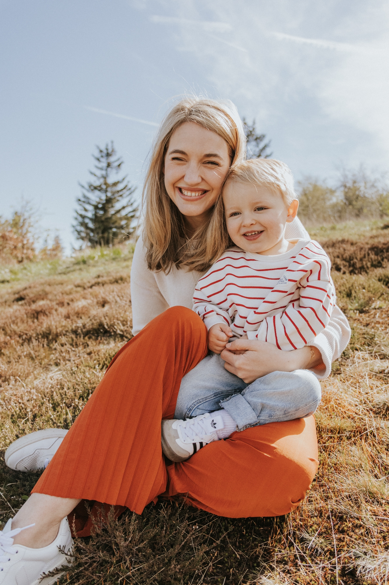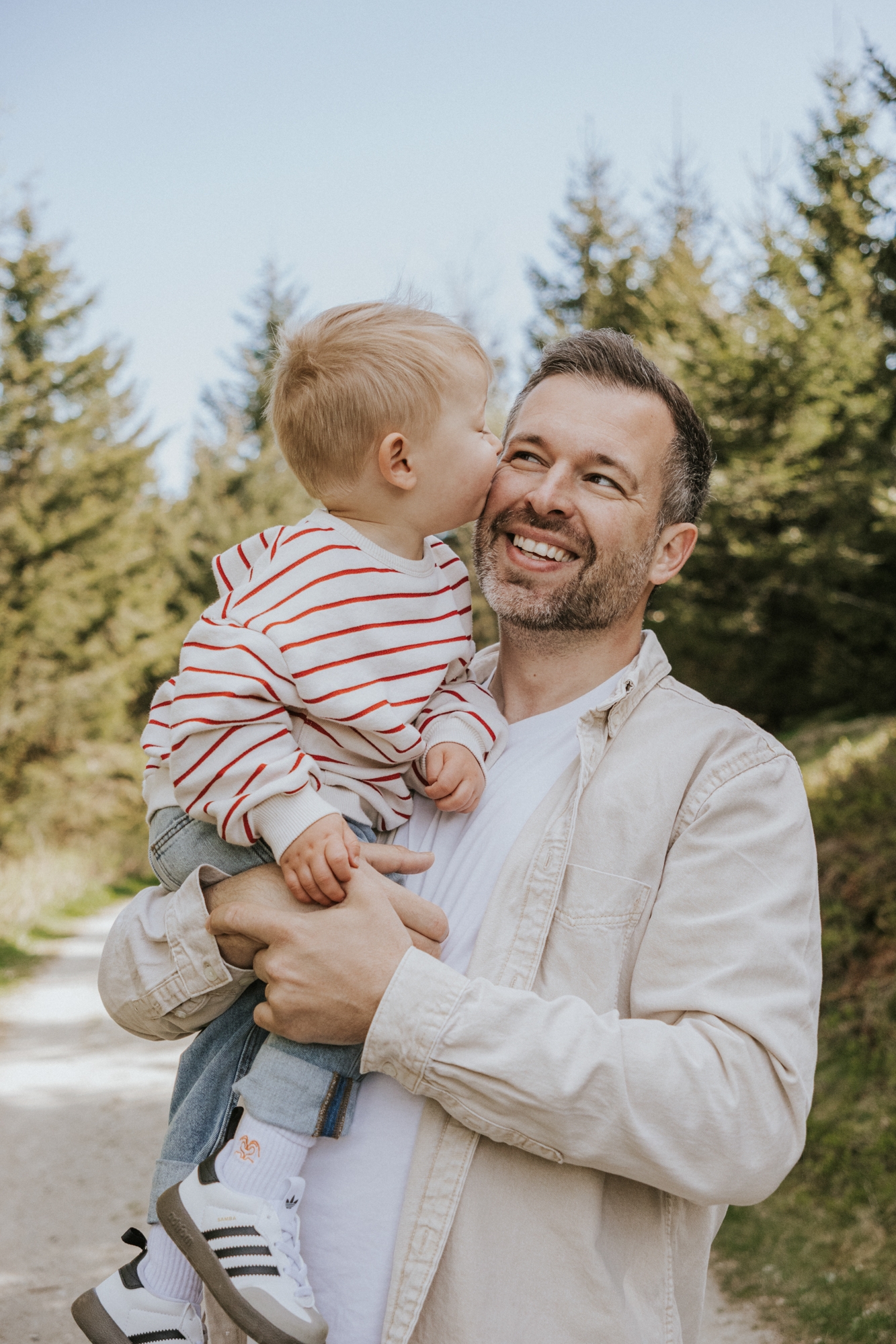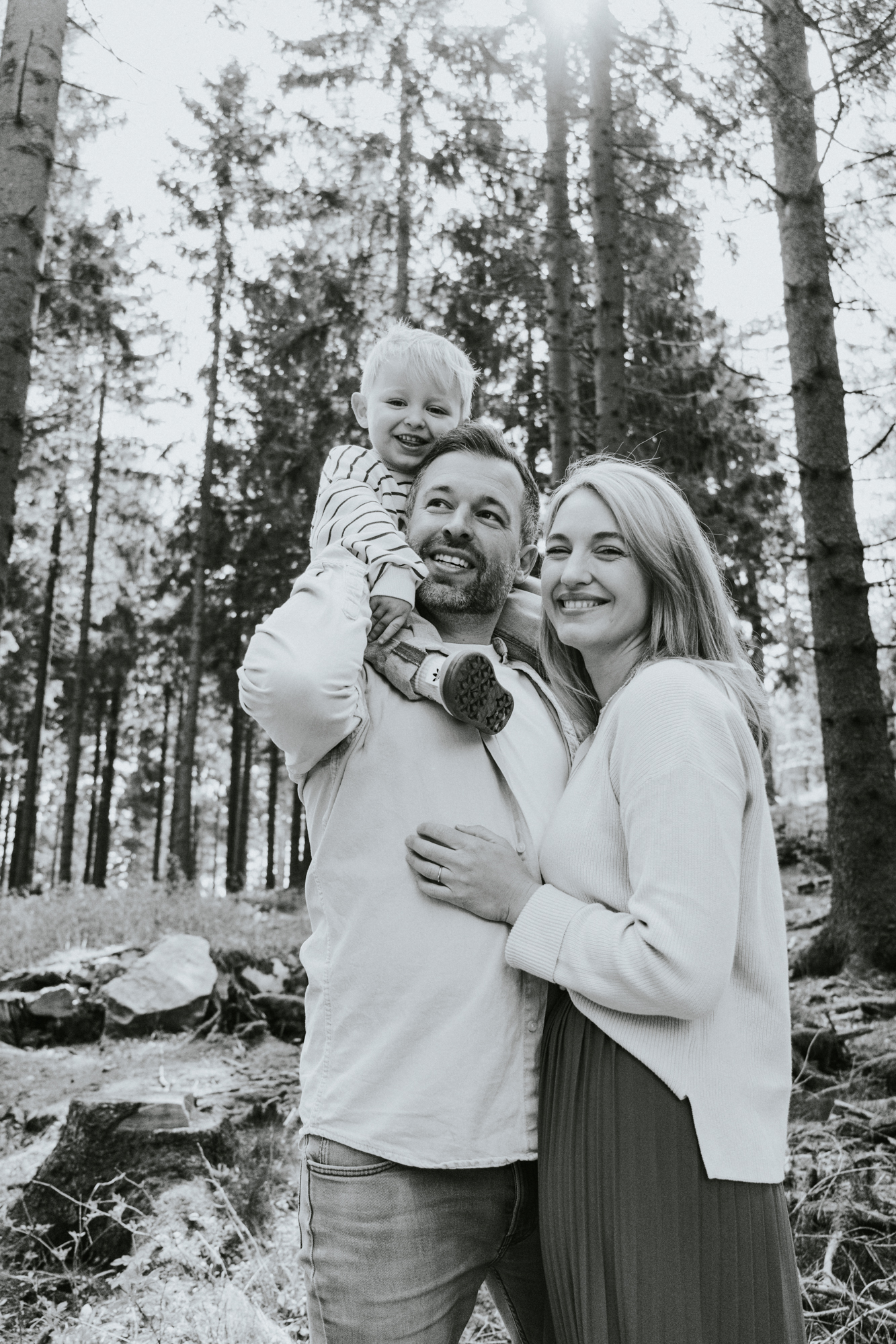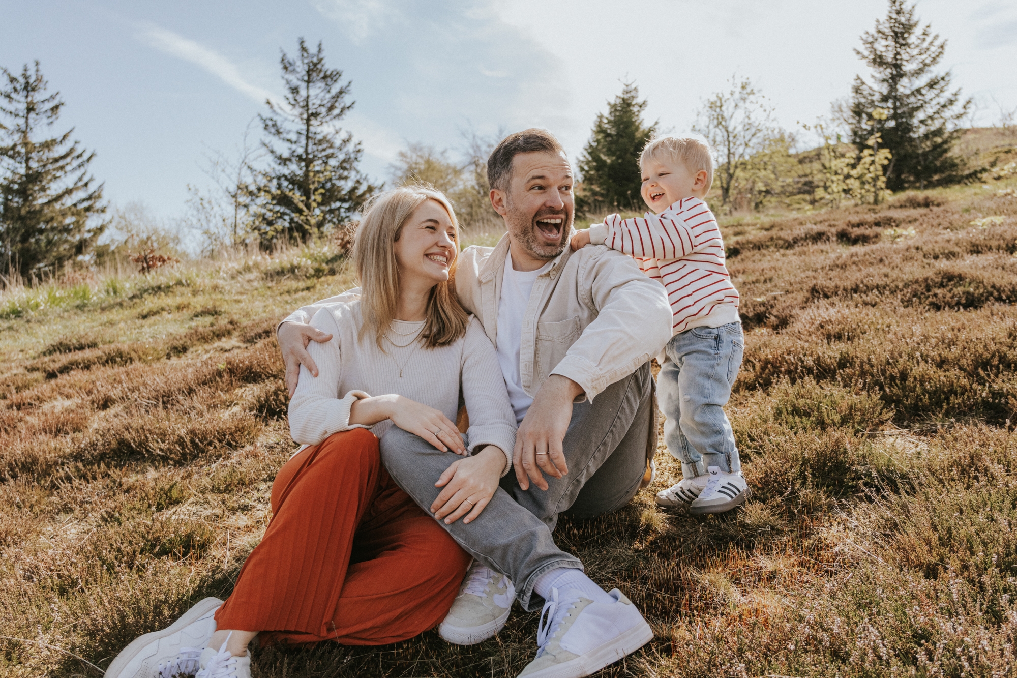 Die Lichtverhältnisse waren an diesem Tag eine kleine Herausforderung – die Sonne stand hoch und schien ziemlich stark. Um harte Schatten im Gesicht zu vermeiden, achtete ich darauf, möglichst oft im Schatten zu fotografieren oder die Sonne bewusst im Rücken zu nutzen. Gerade bei Familienshootings in der Natur ist es mir wichtig, das vorhandene Licht bestmöglich einzusetzen, damit die Aufnahmen natürlich und stimmungsvoll wirken.