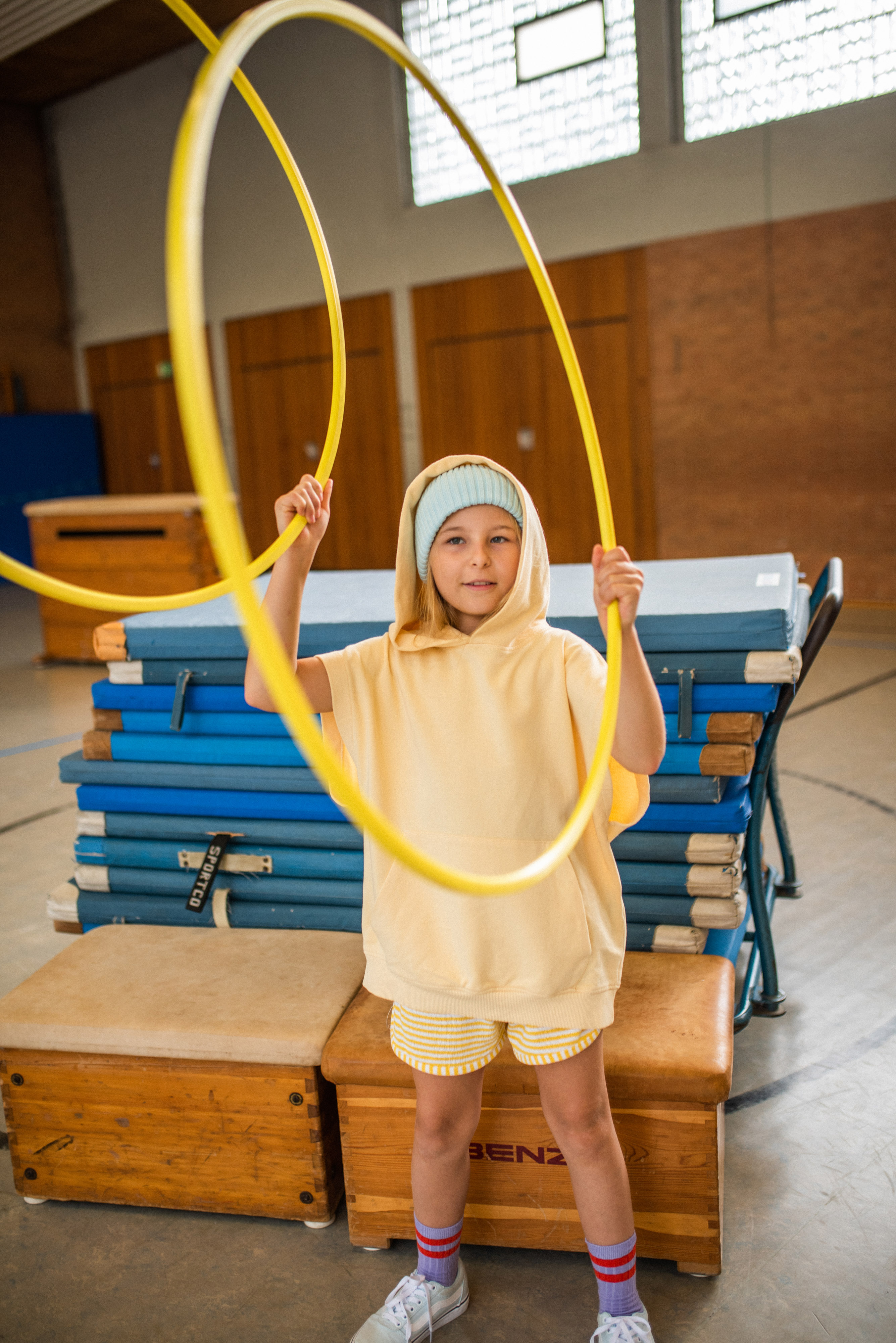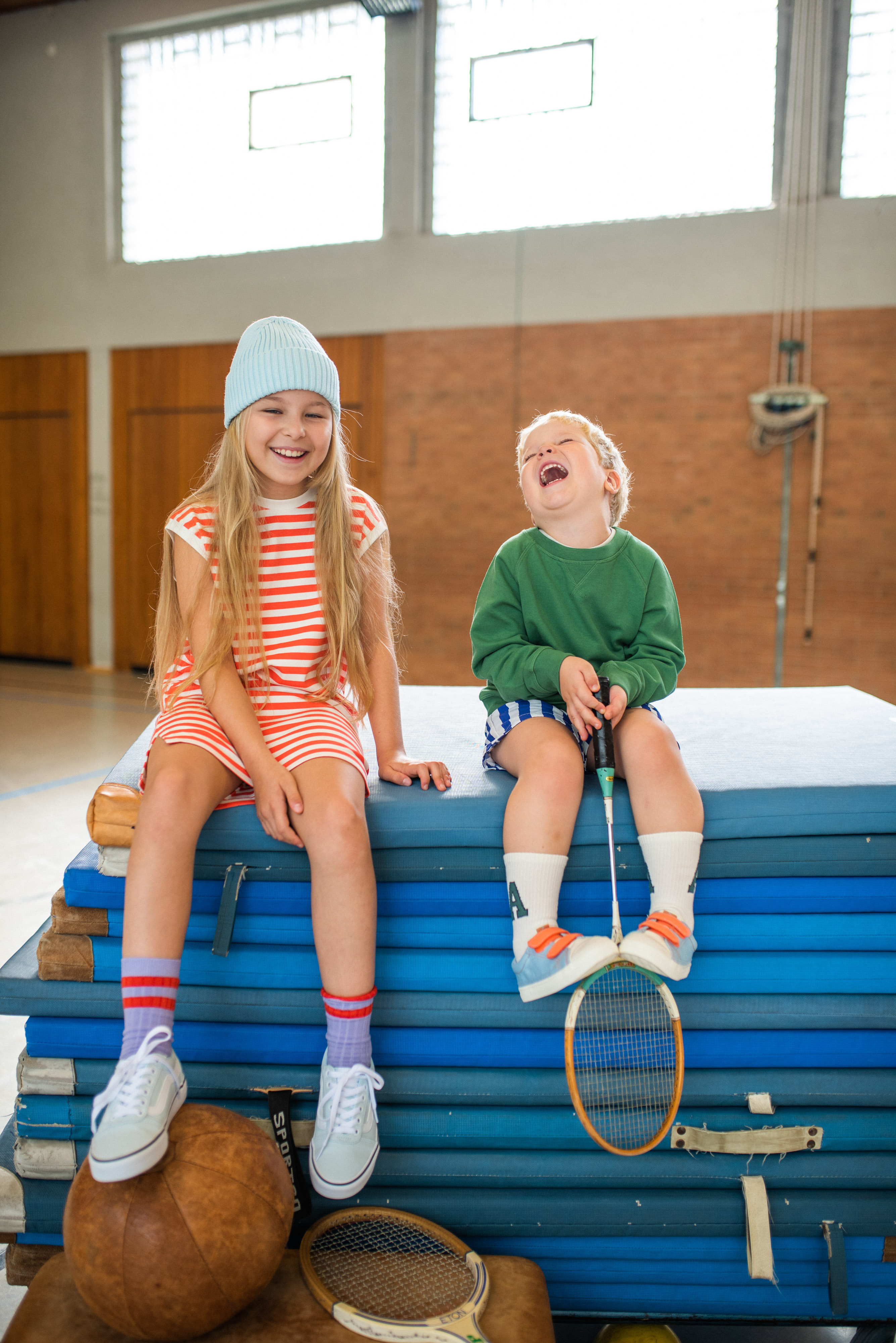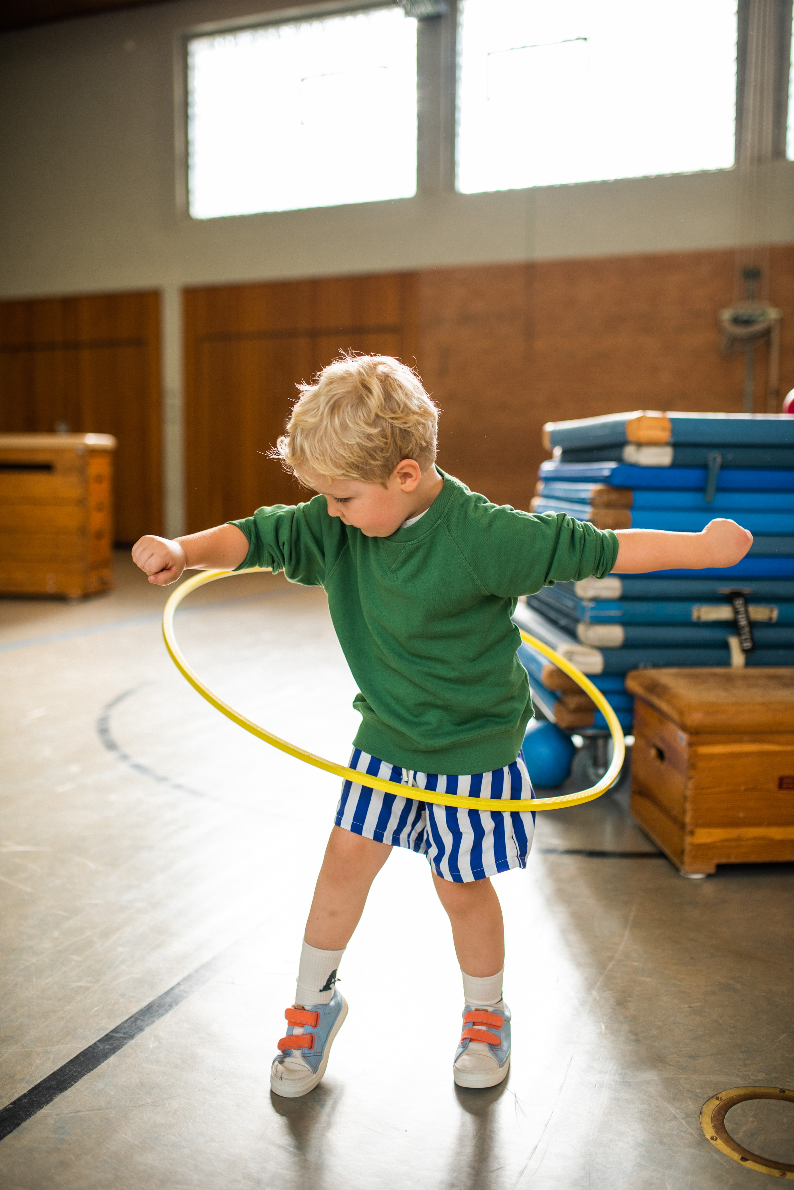 Fotoshooting mit Kindern in der Turnhalle