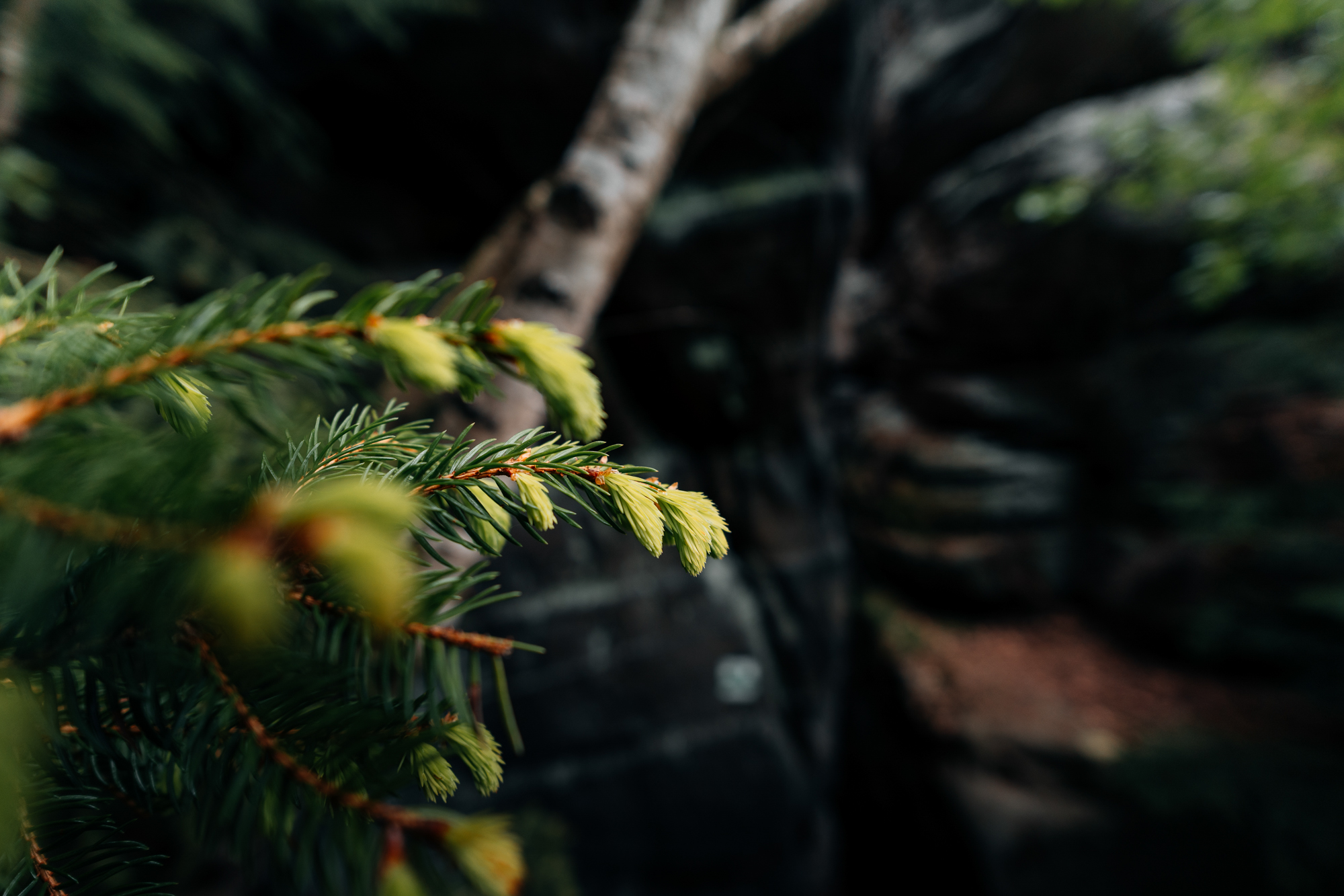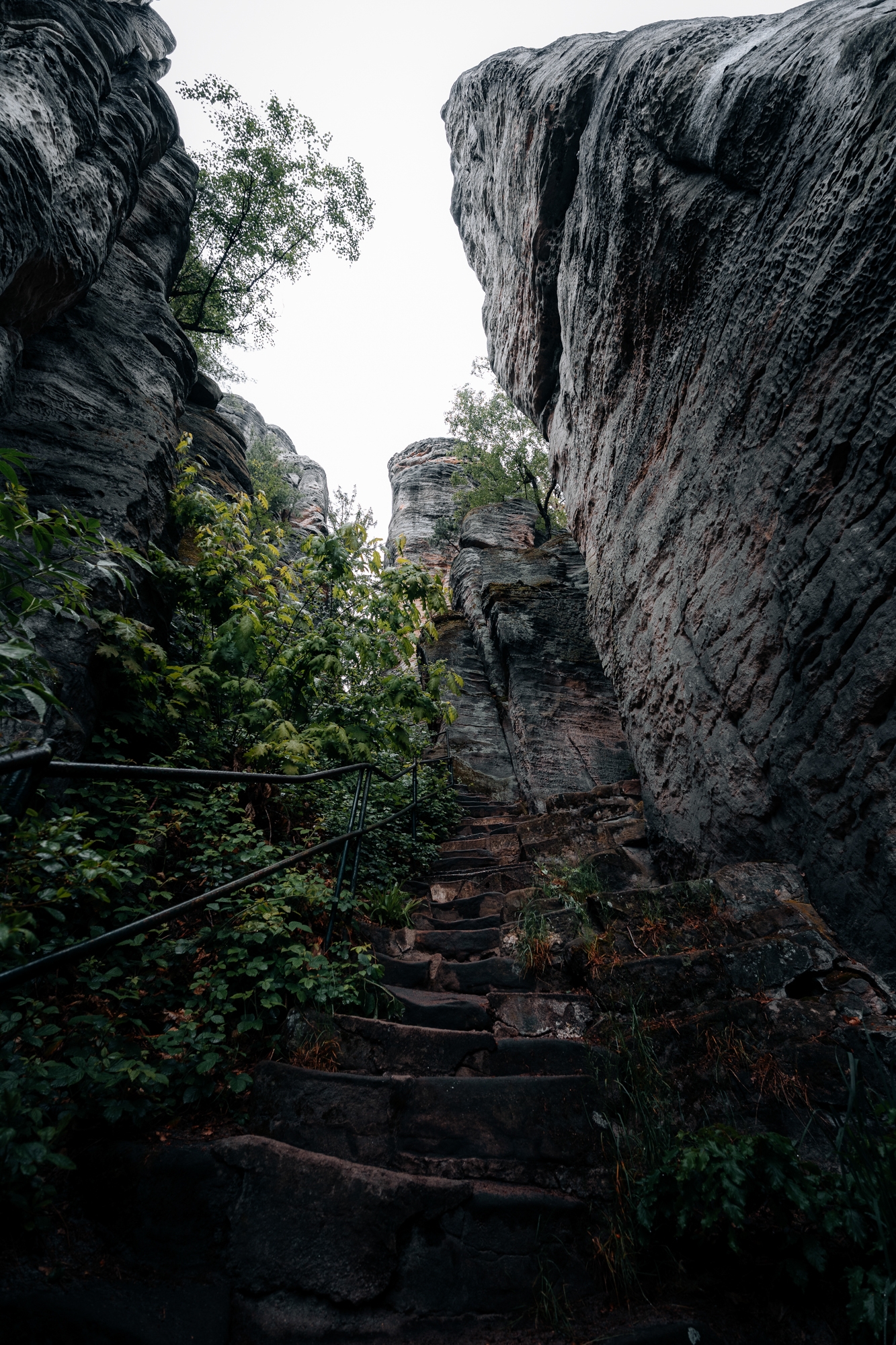 Der wahre Höhepunkt war jedoch, wenn ich nach oben blickte. Inmitten der schroffen Landschaft und umgeben von uralten Bäumen konnte man fantastisch mit der Perspektive spielen. Es war ein bisschen wie das Eintauchen in eine andere Welt, wo jeder Blick nach oben die beeindruckende Größe und Majestät der Natur auf eine neue Weise erlebbar machte. Und genau das war es, was ich an diesem Objektiv so liebte: Mehr Perspektive, ohne den ganzen Schnickschnack eines Zoomobjektivs. Und wenn man mal zu nah oder zu weit weg war, musste man einfach ein paar Schritte vor- oder zurückgehen, bis der Bildausschnitt passte. Egal ob bei den mystischen Suché skály oder den beeindruckenden Teplické skály – die Weitwinkelaufnahmen dieses kompakten, aber leistungsstarken Objektivs waren perfekt geeignet, um die Magie dieser Felsenlandschaften einzufangen.
