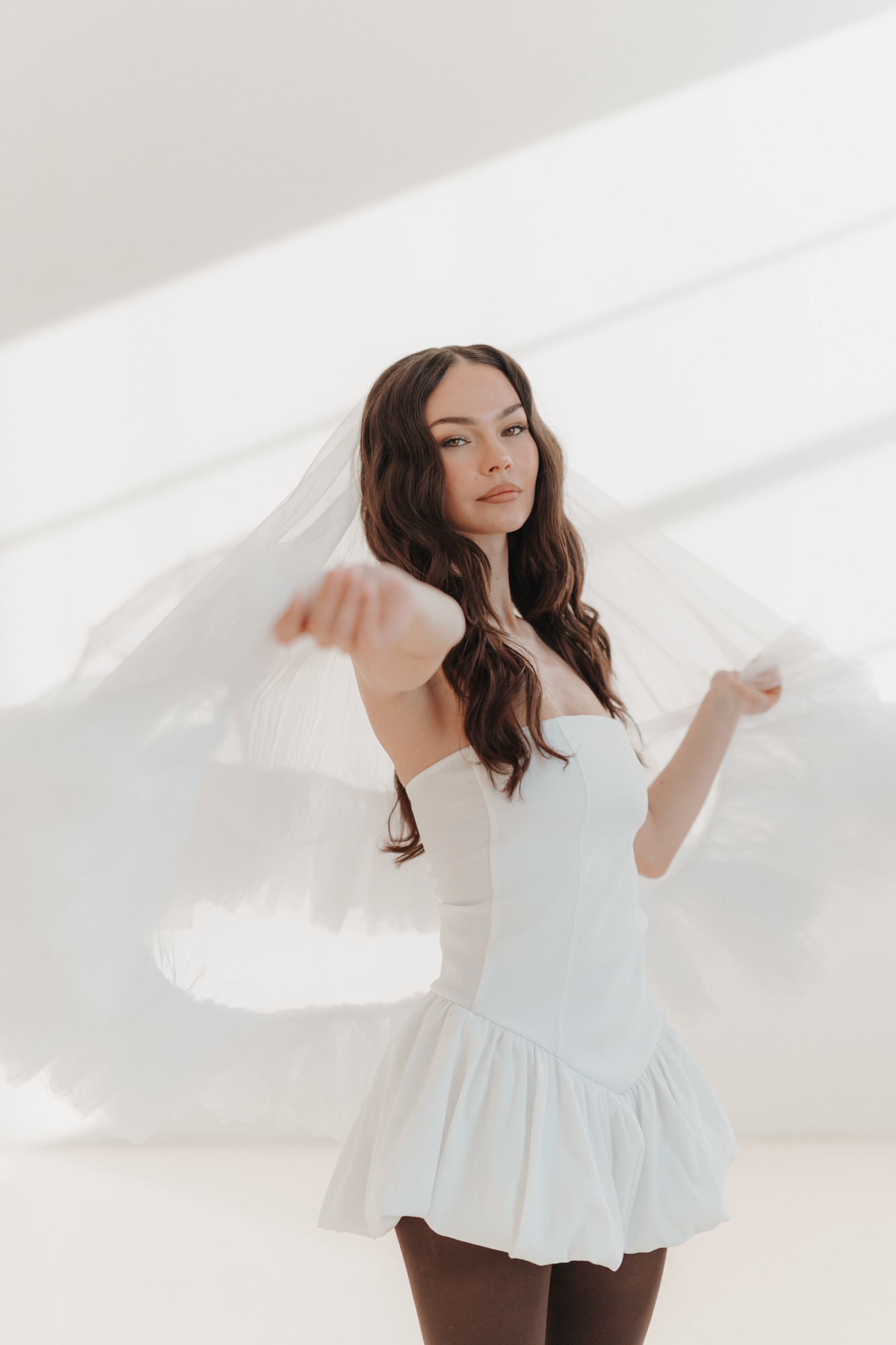 Es gibt Shootings, die fühlen sich schon während des Auslösens nach etwas Besonderem an. „Veiled Stories“ war genau so eines. Ein Konzept, das auf den ersten Blick schlicht wirkt: Ein Schleier, natürliches Licht, ein cleanes Studio und gleichzeitig so viele Ebenen eröffnet, sobald man sich kreativ darin bewegt. Genau das haben wir uns bei diesem Projekt vorgenommen: ein modernes, ästhetisches Editorial, das Bräuten neue Inspiration schenkt.