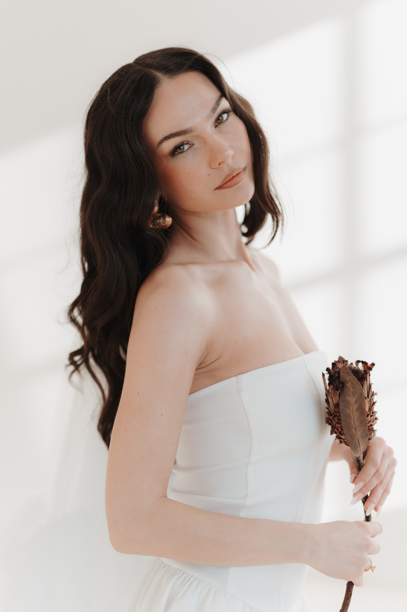 Für dieses Shooting wollten wir bewusst warme Akzente setzen. Brauntöne sind in diesem Herbst überall zu sehen, in Beauty, Interior, Mode und sie verleihen Bildern eine unglaublich angenehme, hochwertige Stimmung. Wir haben verschiedene braune Elemente eingebaut: sanfte Hintergründe, Accessoires und auch andere kleine Stylingdetails. Das 50mm F1.2 hat diese Nuancen so klar und fein abgebildet, dass die Bilder direkt diesen modernen, edlen Look hatten, nach dem viele Paare im Moment suchen.
