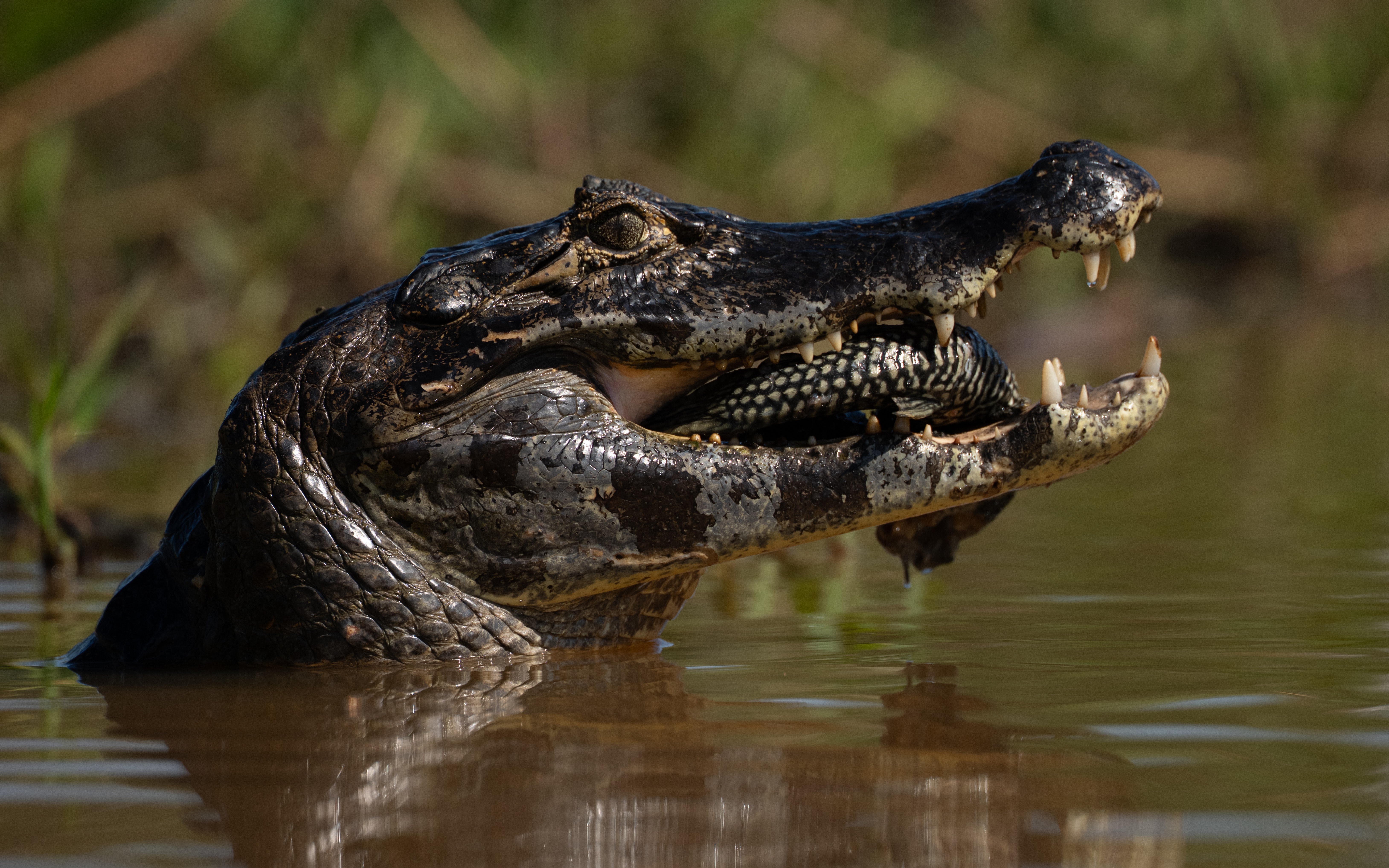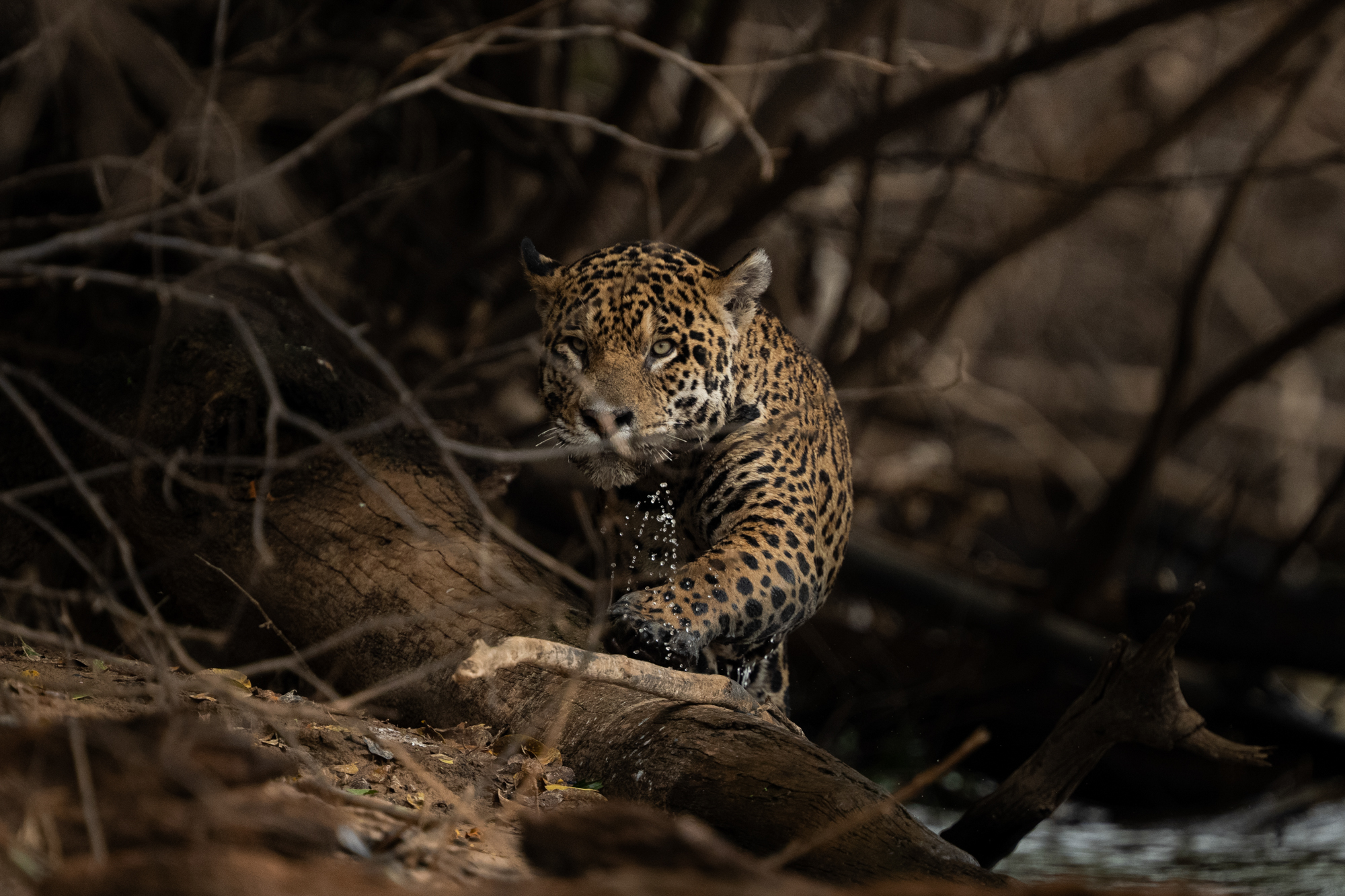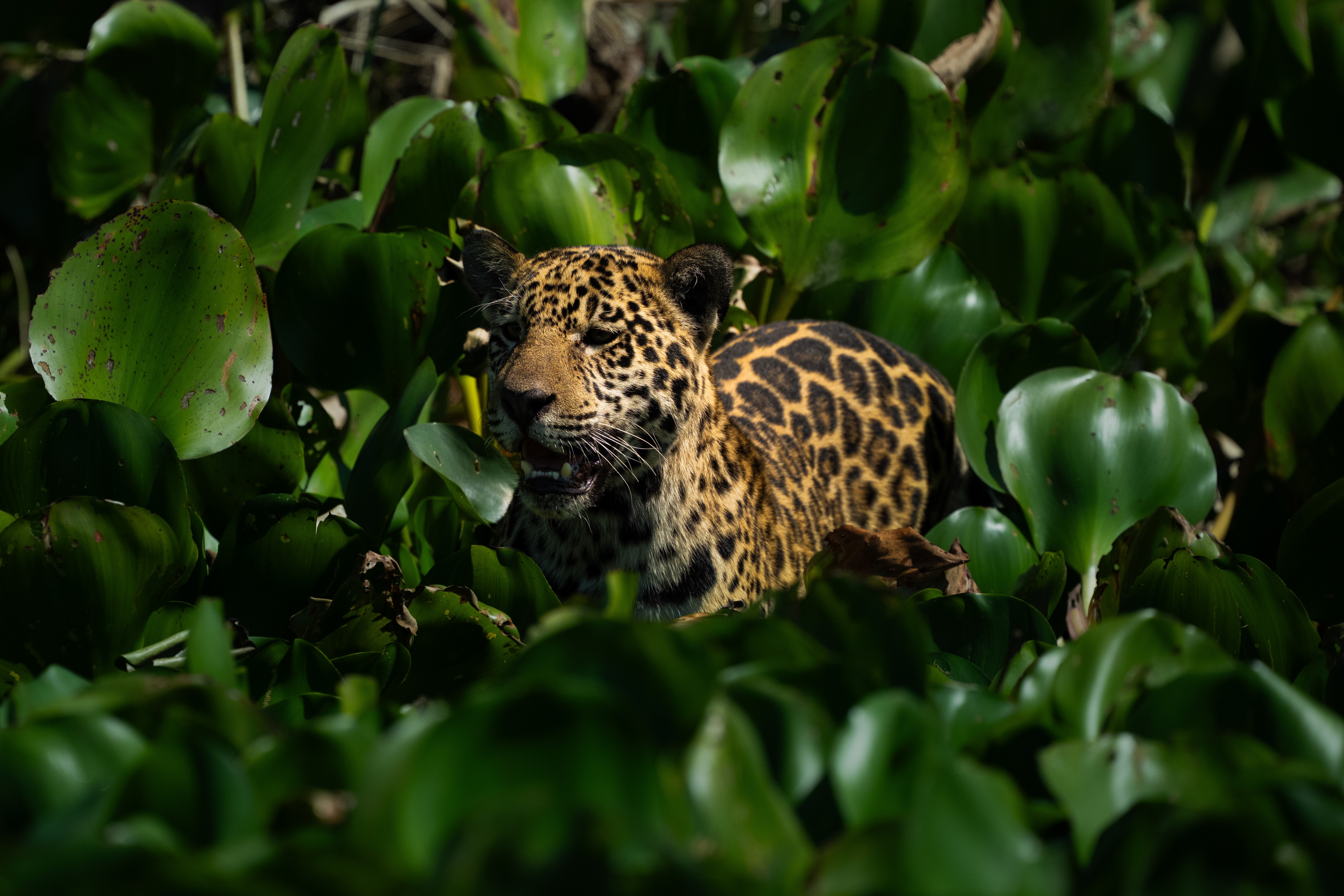Von Panama ging es direkt weiter nach Brasilien, in eine Landschaft, die das Wort „Wildnis“ neu definiert – aber ganz anders, als es der Dschungel tut. Wo man in Panama noch laufen konnte, ist man im Pantanal vor allem eines: auf dem Wasser. Wegen der vielen Jaguare darf man dort nicht einfach durch die Ufervegetation streifen. Also saßen wir von 6:00 Uhr morgens bis etwa 17:00 Uhr abends im Boot, zehn Tage lang – und fotografierten abends eine weitere Stunde oder zwei rund um die Lodge, wo sich Kapuzineräffchen, Kaimane und Vögel gerne in der Nähe blicken lassen.