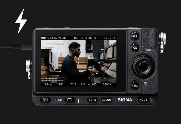 Die Sigma fp L unterstützt das Laden über USB auch bei eingeschalteter Kamera. So können Sie ohne Unterbrechung fotografieren, während die Kamera beispielsweise über eine mobile Powerbank geladen wird – selbst im Freien oder an Orten ohne Steckdose.