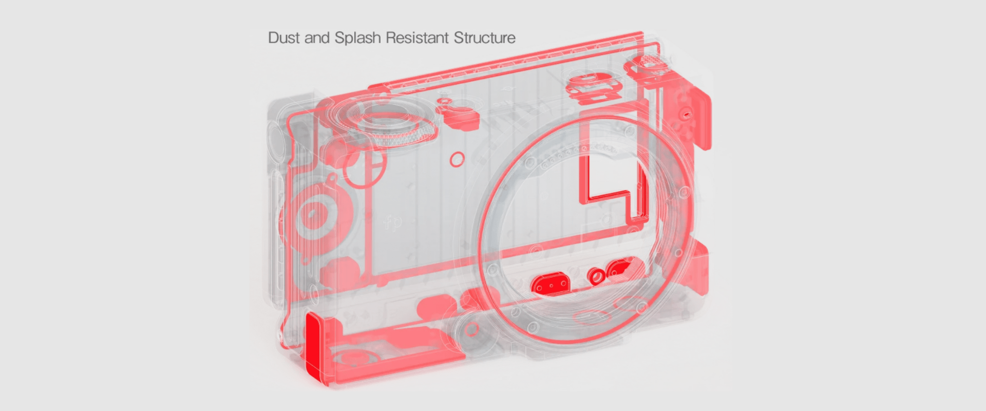 Die Sigma fp Serie ist an insgesamt 42 Punkten des Kameragehäuses mit staub und spritzwassergeschützten Dichtungen versehen. In Kombination mit einem groß dimensionierten Kühlkörper aus Magnesium, der ein Überhitzen verhindert, ist die Sigma fp Serie eine zuverlässige Wahl für Aufnahmen unter unterschiedlichsten Bedingungen sowie für lange Einsatzzeiten.