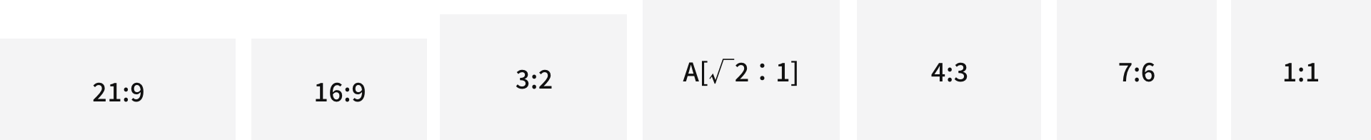 | Bildformat | [21:9] / [16:9] / [3:2] / [A Size (√2:1) ] / [4:3] / [7:6] / [1:1] | |||||||