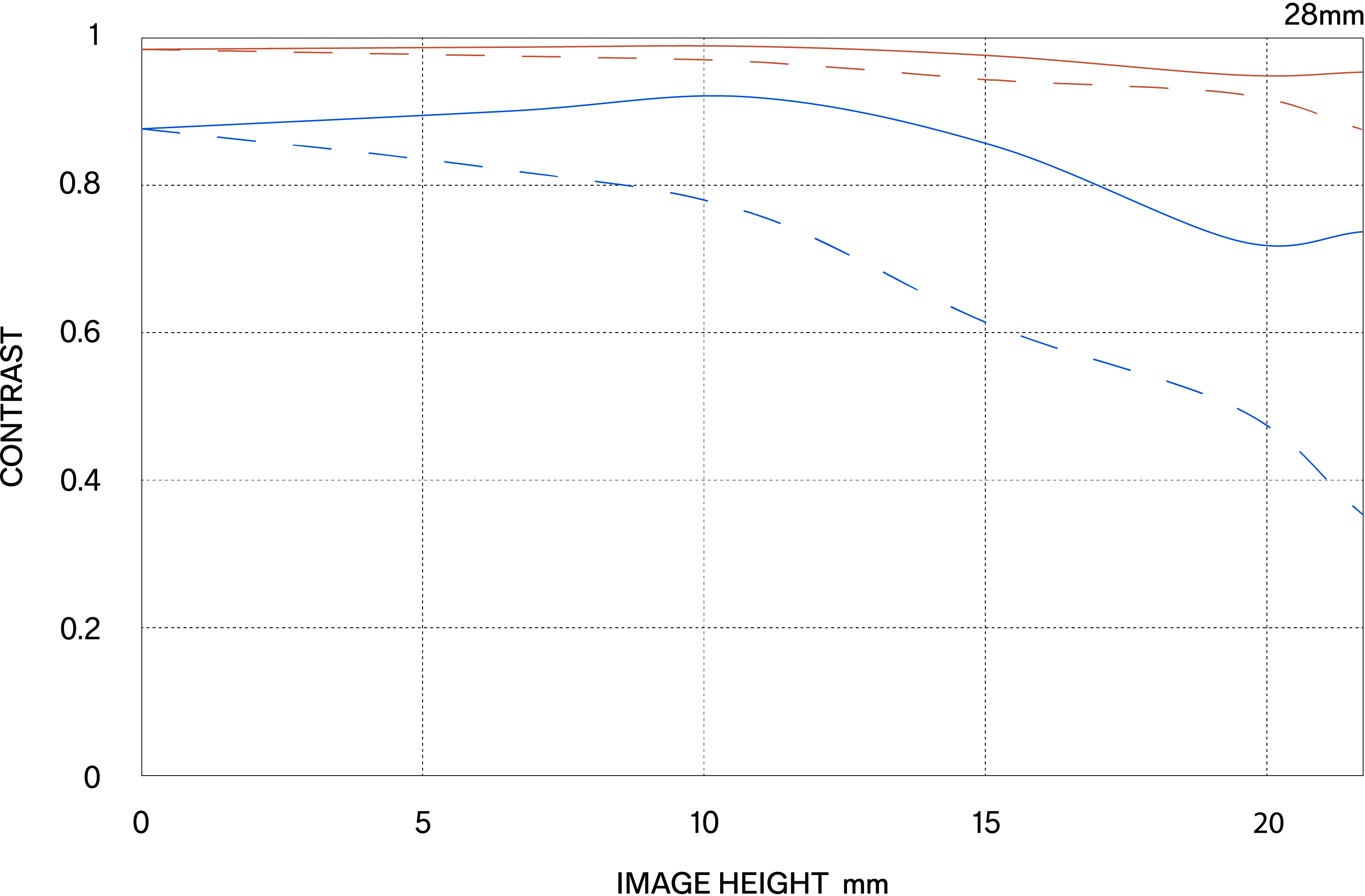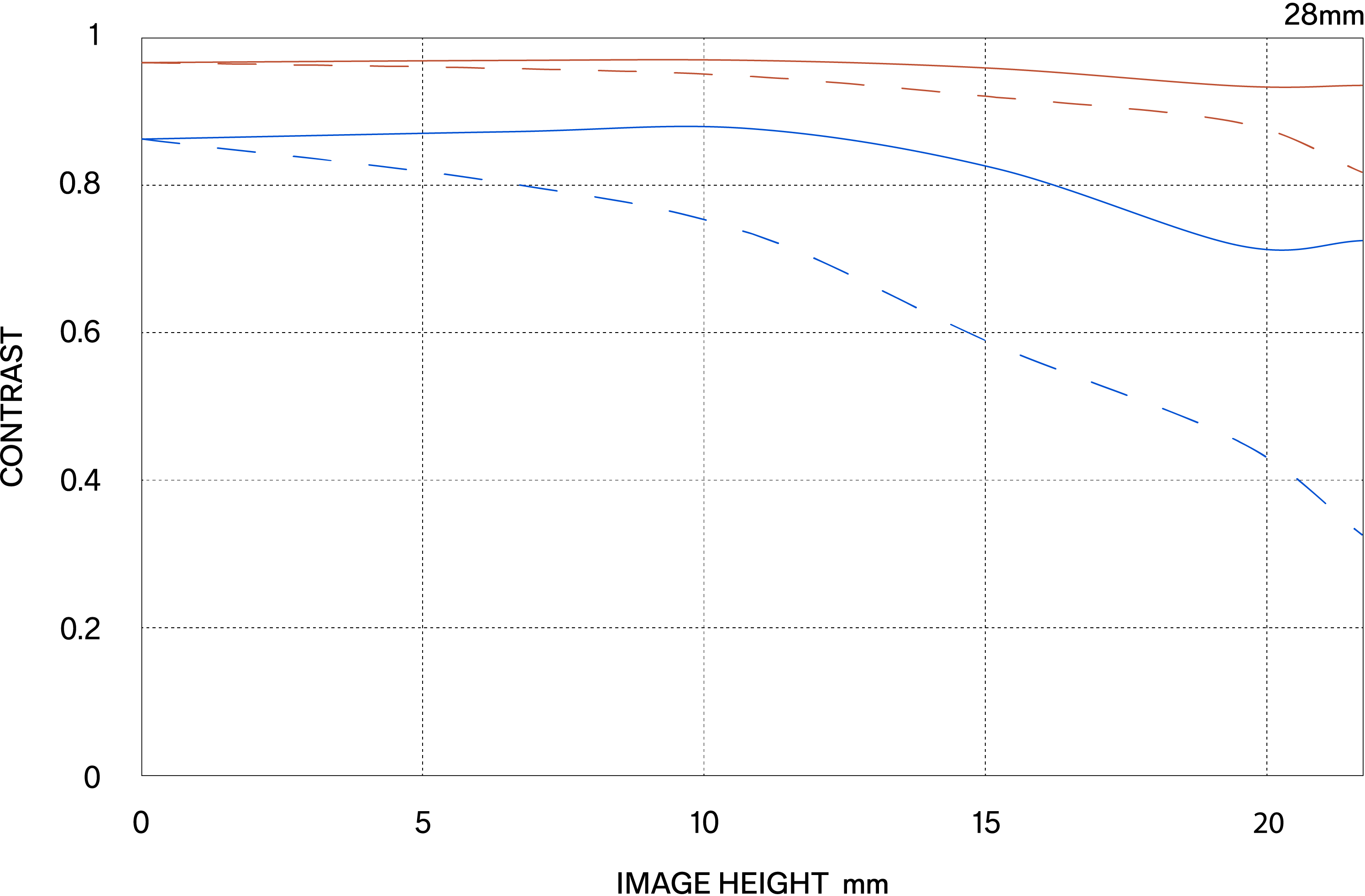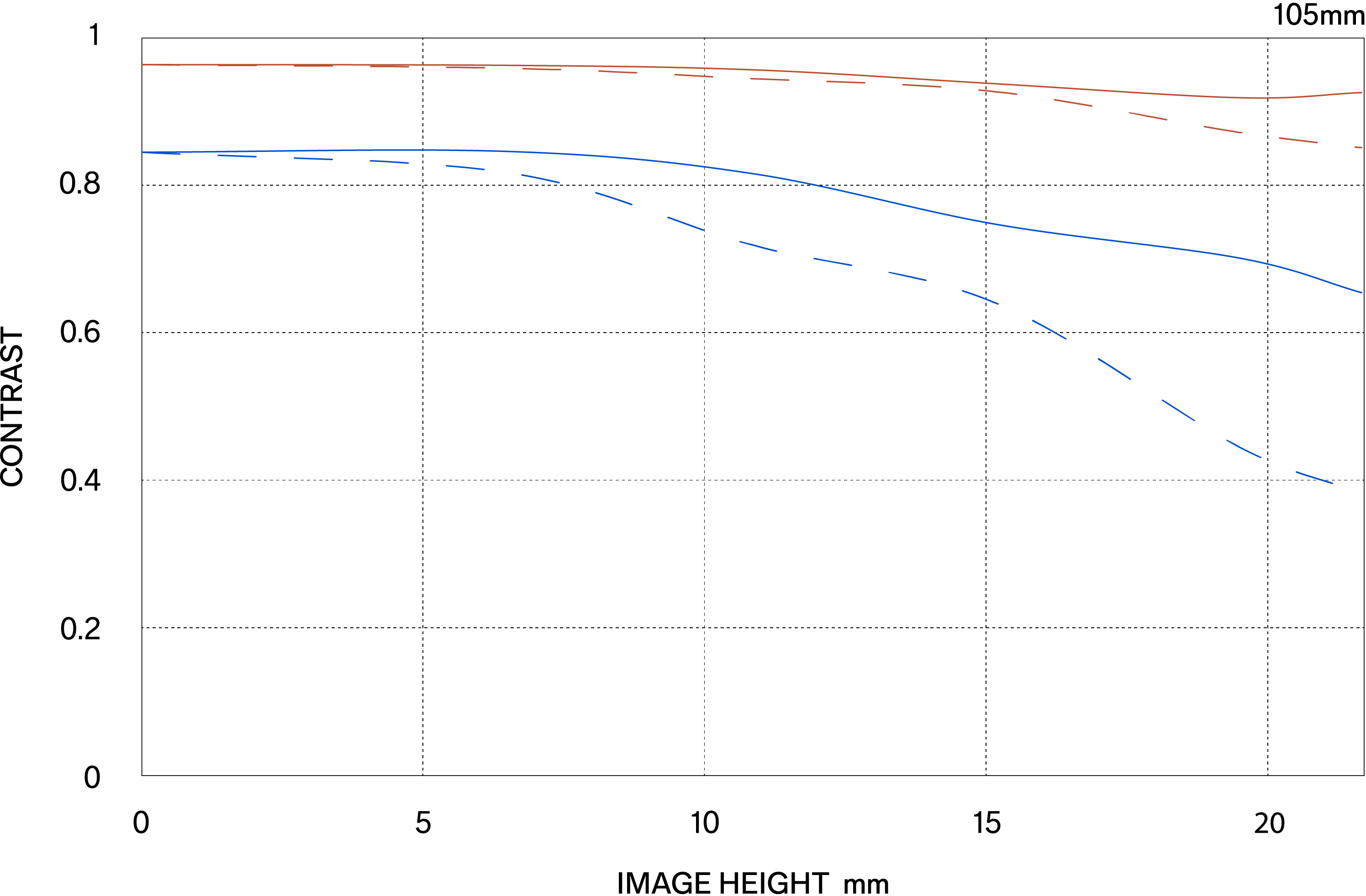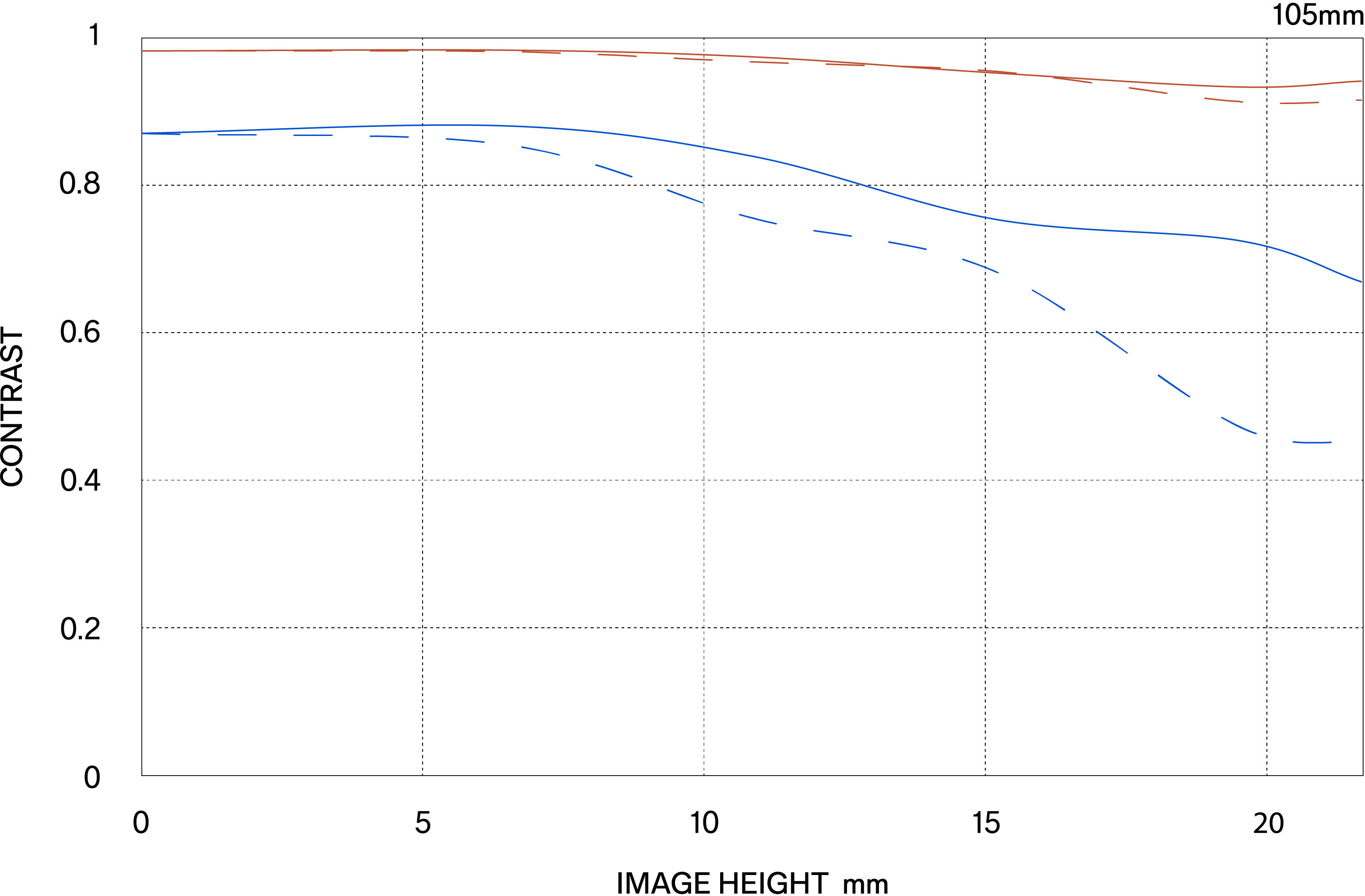 Es gibt zwei Arten von MTF-Diagrammen. Die eine berücksichtigt die Beugungseigenschaften des Lichts und wird als „Beugungs-MTF“ (Diffraction MTF) bezeichnet, die andere ignoriert diese Eigenschaft und wird als „Geometrische MTF“ (Geometrical MTF) bezeichnet.