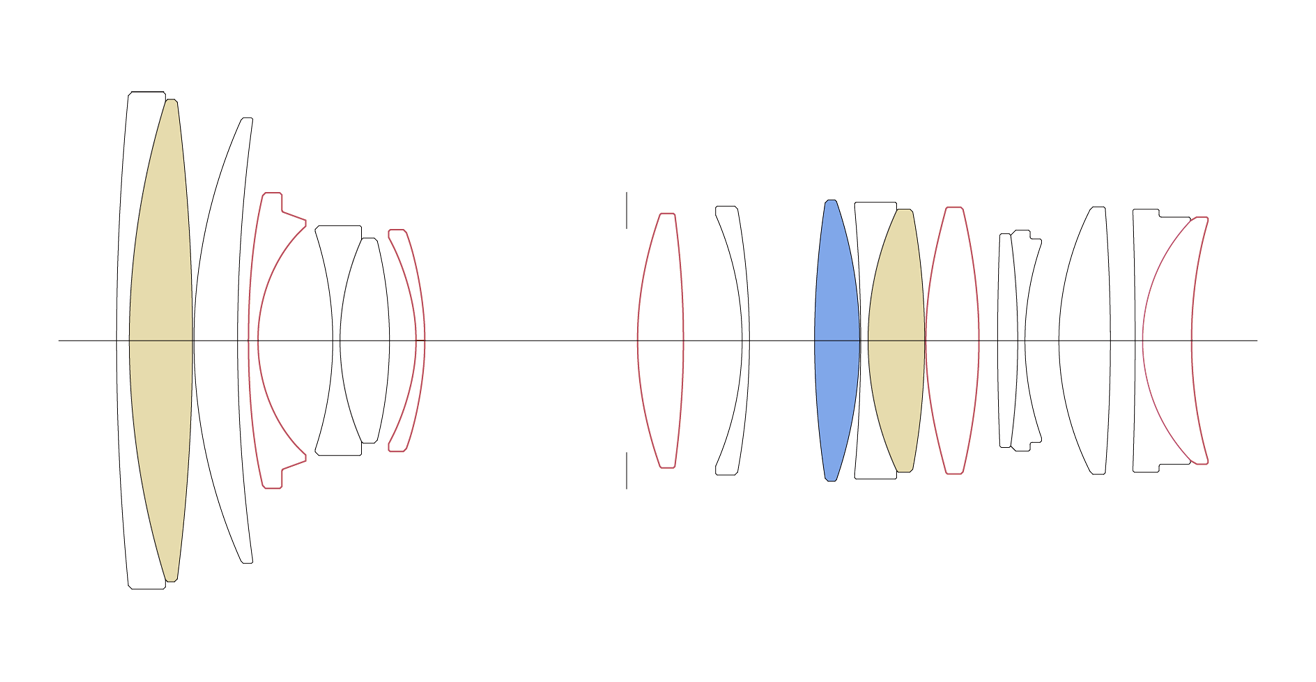 | Optischer Aufbau (Linsen/Gruppen) | 18 Elemente in 13 Gruppen | |