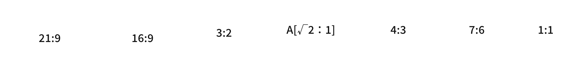 | Bildformat | [21:9] / [16:9] / [3:2] / [A Size (√2:1)] / [4:3] / [7:6] / [1:1] | |
